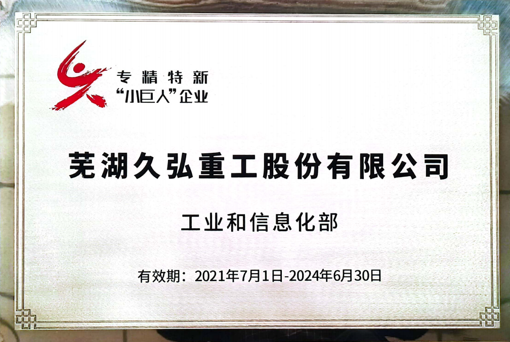 國(guó)家專(zhuān)精特新小巨人證書(shū)