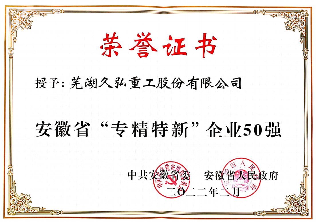 省專(zhuān)精特新50強(qiáng)證書(shū)